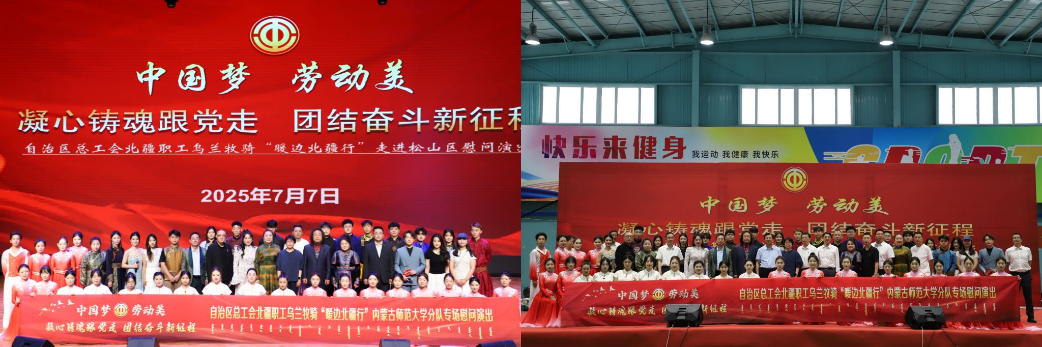 工会坚决贯彻新时代党的文艺方针,于7月7日组织带领职工乌兰牧骑60余名师生,在赤峰市进行了两场暖边演出,为当地800余名人民群众送去文化慰问。这也是“中国梦·劳动美 凝心铸魂跟党走 团结奋斗新征程”——自治区总工会北疆职工乌兰牧骑“暖边北疆行”(师大分队)走进基层慰问的第二、三场演出。
