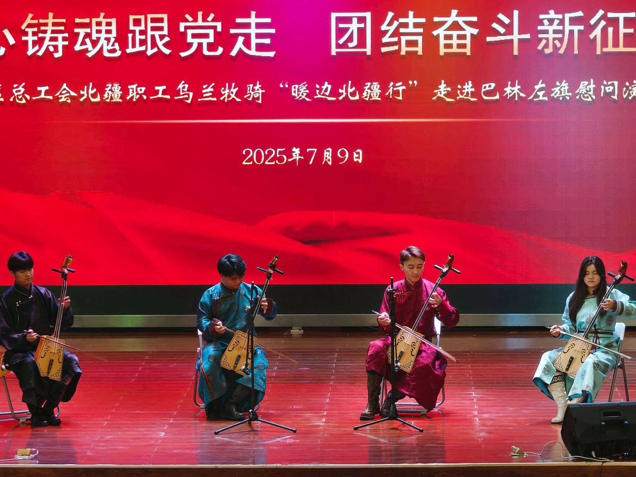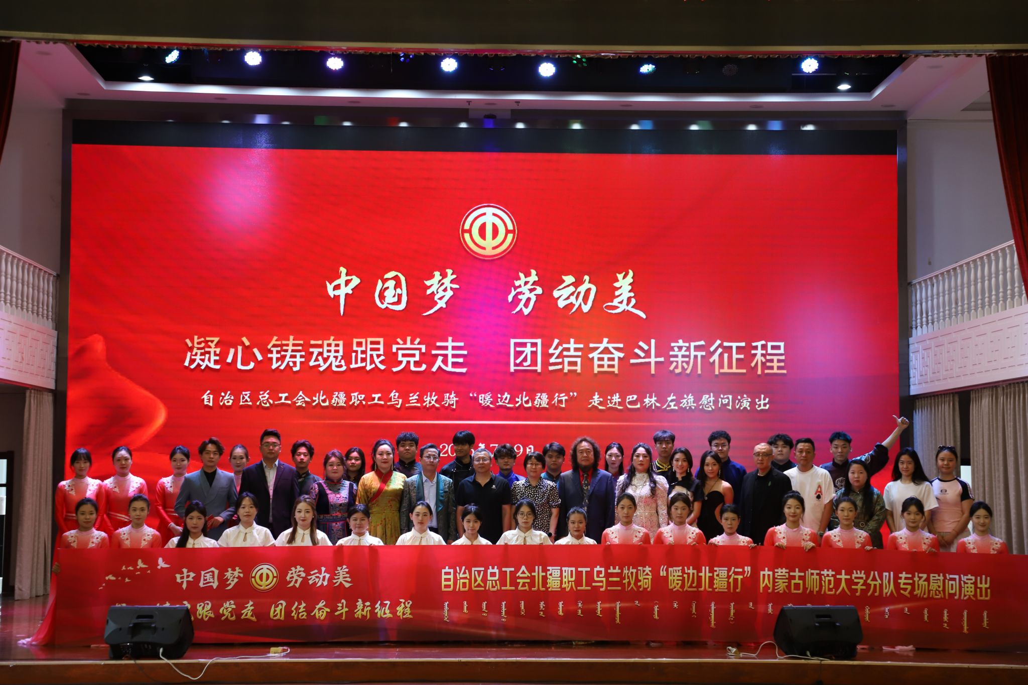7月9日上午,工会组织带领职工乌兰牧骑60余名师生奔赴赤峰市巴林左旗,开启“中国梦·劳动美 凝心铸魂跟党走 团结奋斗新征程”——自治区总工会北疆职工乌兰牧骑“暖边北疆行”走进基层慰问第五场演出。