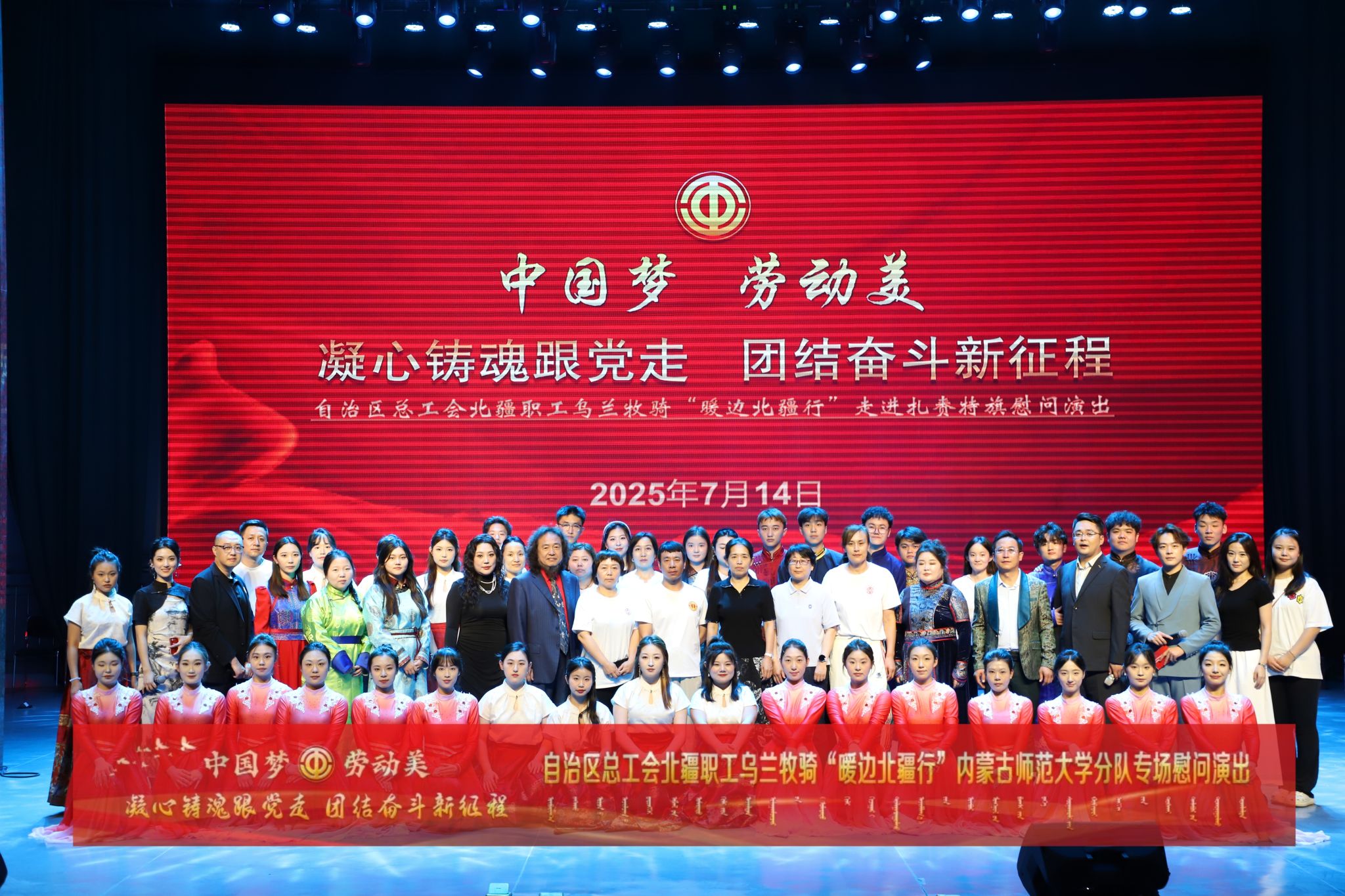 7月14日,随着最后一场演出的掌声在兴安盟扎赉特旗缓缓平息,由我校工会率队的职工乌兰牧骑“中国梦·劳动美 凝心铸魂跟党走 团结奋斗新征程”——自治区总工会北疆职工乌兰牧骑“暖边北疆行”走进基层慰问演出圆满落下帷幕。